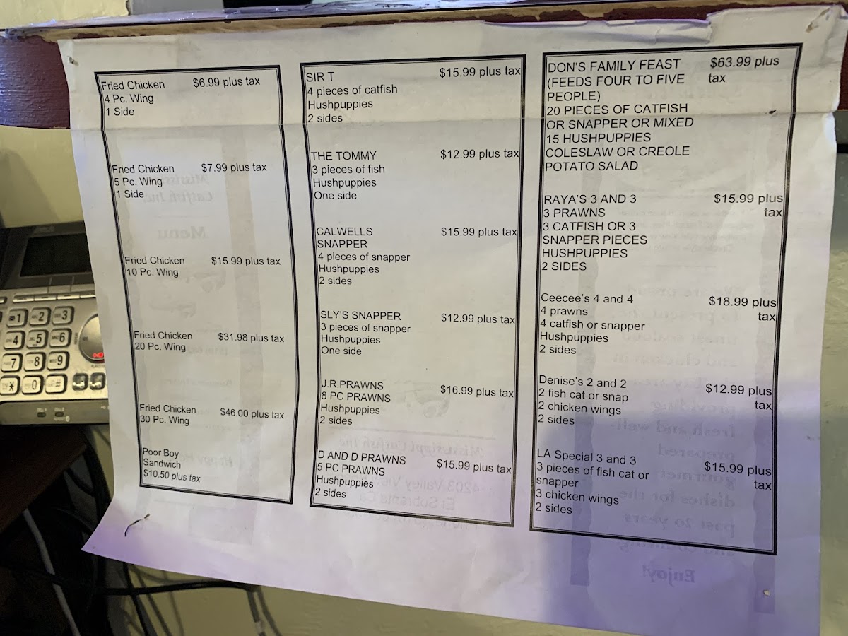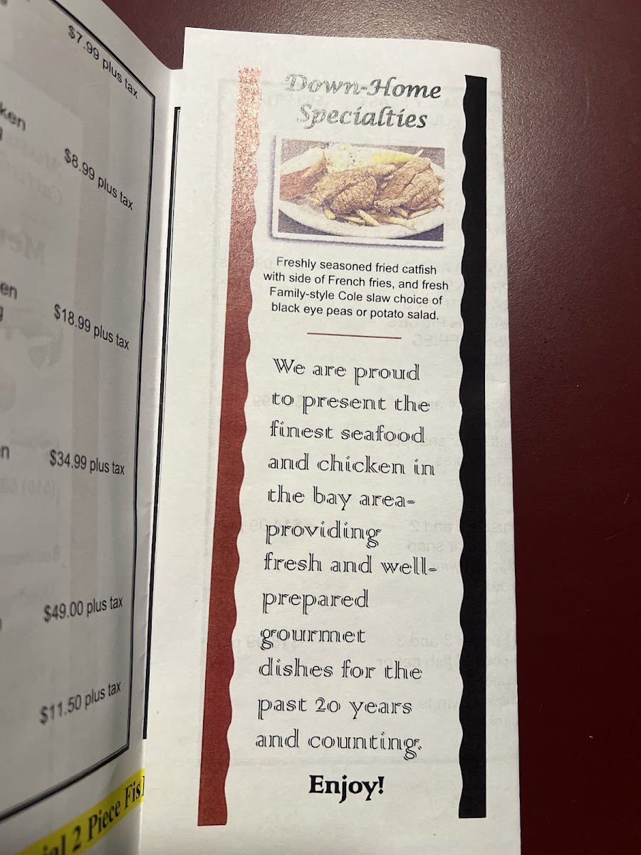 Mississippi Catfish Menu